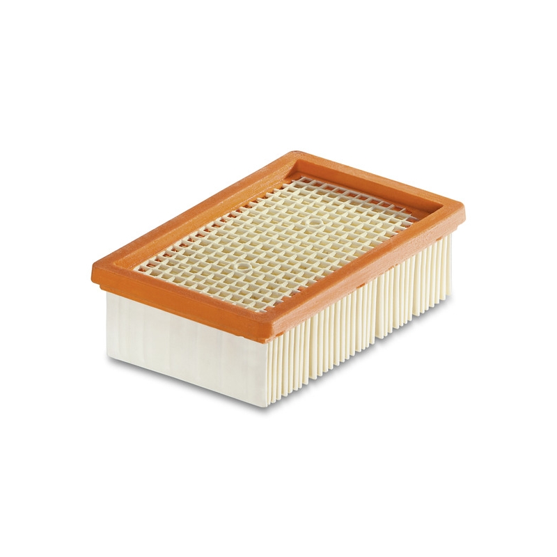 Filtru pliabil plat pentru aspiratoarele multifunctionale Karcher de uz casnic (WD 4 - WD 6). Integrarea in cartusul conceput pe dispozitiv permite inlocuirea filtrului fara a intra in contact cu murdaria.