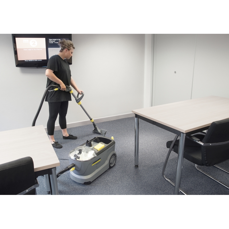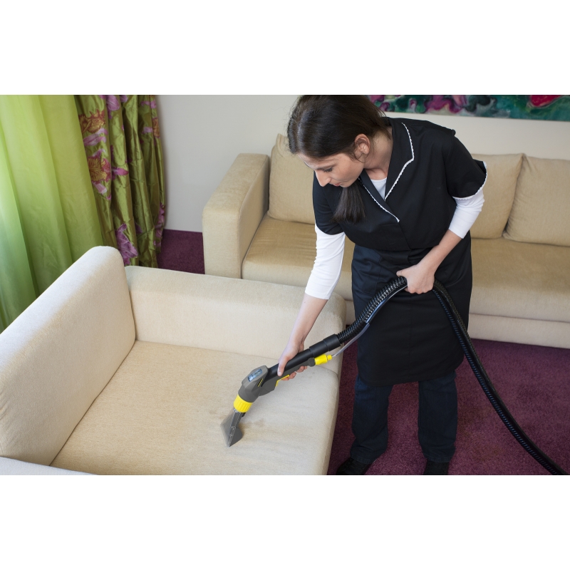Puzzi 10/1 cu duza pentru tapiserii si duza pentru podea este adecvat in special pentru curatarea eficienta si igienica a suprafetelor mici spre medii. Cu o presiune de pulverizare de 1 bar, aspiratoarele cu spalare asigura o curatare blanda si in profunzime a suprafetelor textile si rezultate impresionante, in special atunci cand curatati covoare si tapiserii. Datorita duzei inguste pentru podea, aparatul este adecvat in mod optim pentru a fi utilizat in spatii inchise. Lamelele de aspiratie flexibile permit curatarea usoara a suprafetelor aglomerate. Aspiratorul cu spalare este prevazut cu un carlig integrat pentru cablu si un suport pentru manerul prevazut cu teava de aspirare si declansator.