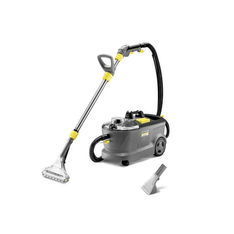 Puzzi 10/1 cu duza pentru podea/duza pentru tapiserii pentru curatarea covoarelor si a tapiseriilor prin spray-extractie. Ideal pentru suprafete mici. Cu carlig integrat pentru cablu si suport pentru maner prevazut cu teava de aspirare/declansator.