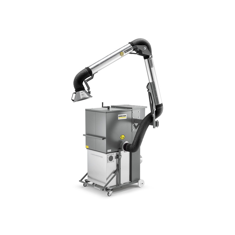 Aspirator industrial cu braț ID 130/22 Z22 potrivit pentru utilizare zona 22. Aspiră cantitățil mari de șpan fin și praf periculos (OEL>0,1 mg/m³). Portabil, cu acționare prin cuplu, robust.