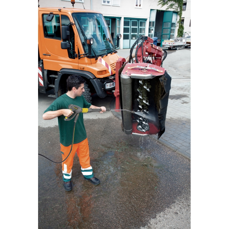 Dispozitiv de curatare puternic, de inalta presiune, cu 3 faze, cu apa calda, de clasa compacta, cu motor cu 4 poli, electric, racit cu apa. Modul Eco unitar pentru a garanta operarea ecologica si economica. Manipulare usoara datorita operarii centralizate cu 1 buton. Mobilitate excelenta datorita rotilor si a rolelor de ghidare mari. sasiu rezistent cu rezervoare integrat pentru curatare si combustibil Pistol ergonomic Easy Press cu Softgrip si reglare fara nivel a presiunii / cantitatii de apa Servo Control direct pe accesorii . Sertare practice de depozitare pentru accesorii, duze, etc.