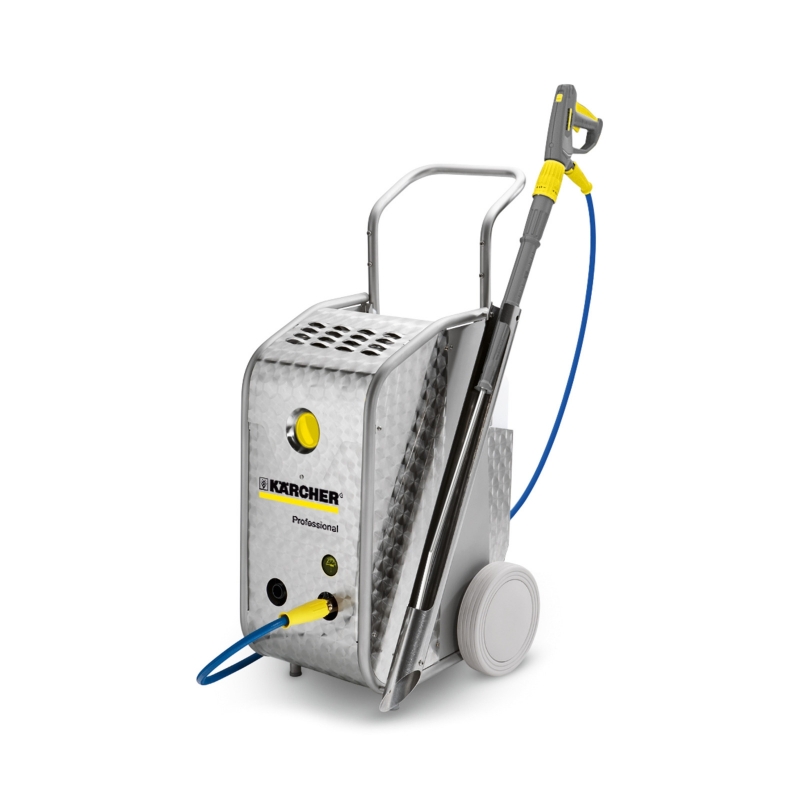 Aparatul de curatat cu inalta presiune HD 10/15-4 Cage F se desemneaza in principal prin indicatori mari de performanta si o rezistenta la apa fierbinte de 85°C. Reglementarile dure de igiena sunt indeplinite fara probleme.