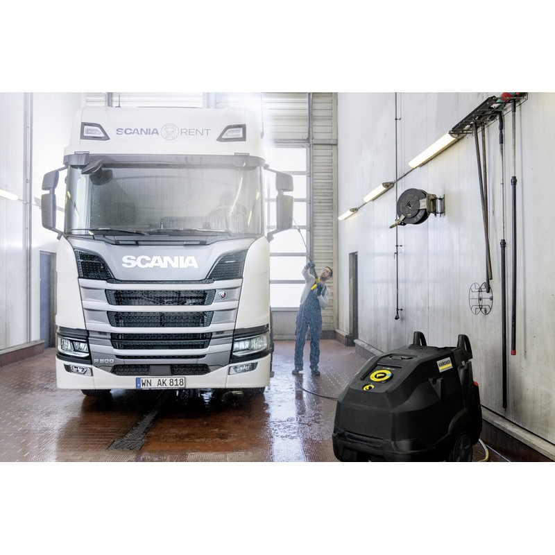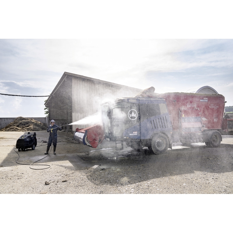 Aniversarea a 90 de ani Kärcher: datorită modului economic eco!efficiency, ingineriei optimizate a arzătorului, furtunului de înaltă presiune cu durată lungă de viață și a două rezervoare de detergent cu dozare precisă, curățătorul cu apă fierbinte cu presiune înaltă HDS 11/18-4 S în negru de la Kärcher impresionează prin nivelul ridicat de economie și rezultatele excelente de curățare. Pentru o fiabilitate maximă în funcționarea zilnică, unitatea de bază din clasa superioară are componente de înaltă calitate, cum ar fi motorul electric răcit cu apă, cu turație mică, cu 4 poli și pompa axială robustă cu 3 pistoane cu piston ceramic. Ergonomia sofisticată și ușurința în utilizare a HDS 11/18-4 S se reflectă, de exemplu, în pistolul de declanșare HP EASY!Force Advanced cu economie de energie cu lance de pulverizare de 1050 milimetri, control servo și tehnologie brevetată a duzelor sau conceptul inteligent de mobilitate pentru transportul convenabil al mașinii. Datorită tehnologiei de siguranță dovedite cu filtru de apă, supapă de siguranță, furtun SDS și opțiuni de dedurizare, componentele sunt, de asemenea, protejate eficient, asigurând astfel o disponibilitate ridicată și o duratălungă de viață a mașinii.