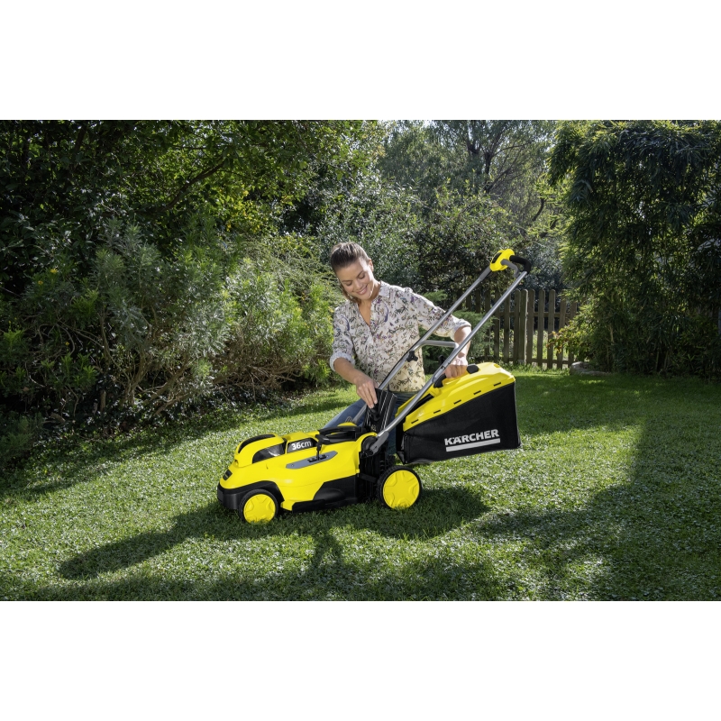 Masina de tuns iarba LMO 18-36 face posibilă cosirea fără efort, chiar și pe peluzele mai complexe. Cuțitul din oțel lasă o tăietură uniformă. Iarba tăiată poate fi colectată în coș. Pentru o mai mare flexibilitate, înălțimea de tăiere poate fi reglată în 4 trepte. Și pentru o funcționare confortabilă a mașinii de tuns iarba, este echipata cu maner de prindere plăcut la atingere din spumă cu doua întrerupătoare pe maner. Indicatorul de nivel, care informează când trebuie golit cosul, se dovedește a fi deosebit de practic. Pentru a preveni pornirea accidentală a mașinii de tuns iarba, butonul de securitate este utilizat ca mod de siguranță pentru copii. În plus, manerul reglabil în înălțime asigură o pozitie plăcută de lucru, iar modul pliabil asigură o economie de spațiu. Chiar și cosirea de lângă margine nu este o problemă. Pachetul de livrare include o baterie și un încărcător rapid.