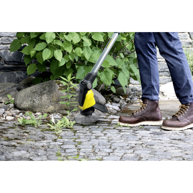 Setul WRE 18-55 Battery Set pentru îndepărtarea mușchiului și a buruienilor conține acumulator și încărcător. Ideal pentru poteci, terase și intrări.