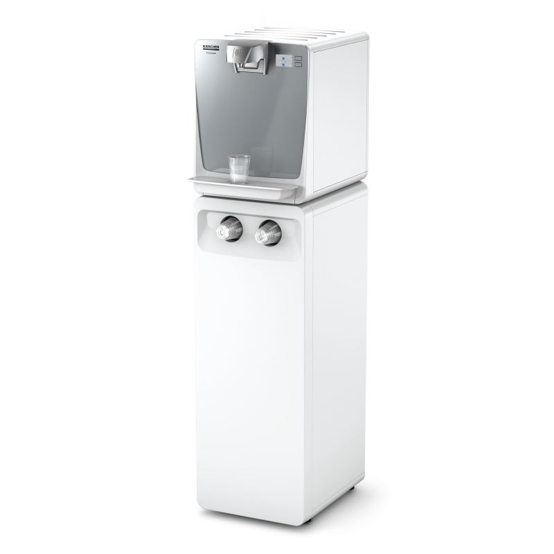 Dispenser de apa pentru un numar de pana la 50 de utilizatori: racordat la reteaua de apa potabila, aparatul cu suport WPD 100 Basic, cu filtrul sau inovativ asigura doua tipuri de calitate a apei.