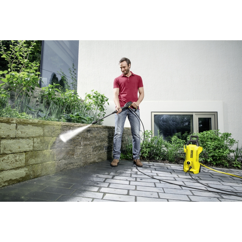 K2 Power Control pentru curățarea bicicletelor, uneltelor de grădină sau a mobilierului de grădină. Consultant prin intermediul aplicației Kärcher Home & Garden
