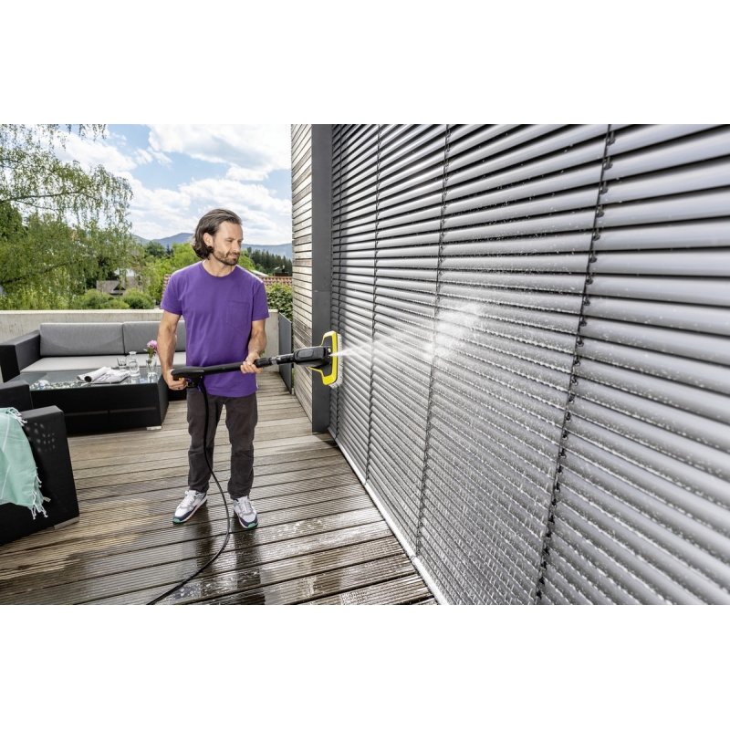 Combinație inteligentă: Peria de spălat WB 7 Plus 3 în 1 combină trei funcții importante într-un singur produs. Aplicați spumă, îndepărtați murdăria încăpățânată cu un jet plat de înaltă presiune ori acționați deosebit de temeinic, dar cu atenție, cu o perie moale - totul este posibil fără a fi nevoie să schimbați accesoriile. Funcția necesară este selectată cu ajutorul unei manete din zona de prindere a periei. Acest lucru înseamnă că peria multifuncțională, economisește timp, este comodă și garantează întotdeauna rezultate perfecte de curățare - chiar și pe suprafețe delicate, cum ar fi vopseaua, sticla sau plasticul. Rezervorul de detergent integrat permite utilizatorilor să lucreze mai mult timp fără a fi nevoie de reumplere.