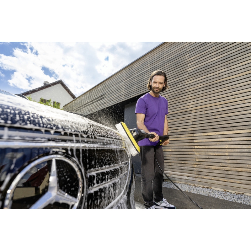 Este multifuncțională datorită combinației sale inteligente: Peria de spălare WB 7 Plus 3 în 1 combină într-un singur produs un jet de spumă, o duză plată de înaltă presiune și o perie moale.