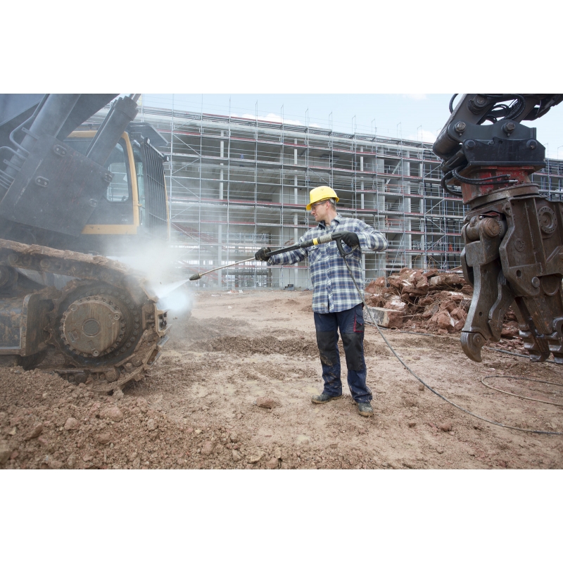 Datorita numeroaselor sale accesorii, puternicul motor diesel Yanmar si cadrul de tevi rezistent, Aparatul de curatat nostru cu apa calda sub presiune HDS 1000 De poate face fata provocarilor la care alte aparate esueaza. Componentele de inalta calitate - pompa de mare presiune, de exemplu, este dotata cu un capac al cilindrului din alama, valve de otel inoxidabil si pistoane de inox acoperite cu crom-nichel. Inovatoarele sisteme ca noul pistol EASY!Force si sistemul EASY!Lock cu conectori cu eliberare rapida: in timp ce pistolul EASY!Force utilizeaza reculul jetului de presiune pentru a reduce la zero forta de sustinere, sistemul EASY!Lock de conectori cu eliberare rapida permite manevrarea care este de 5 ori mai rapida decat cea cu conectori prin insurubare, fara a pierde nimic din rezistenta sau durata de viata. Dotarile complete de siguranta, ce constau din plutitor cu protectie integrata impotriva calcifierii (DGT) ce asigura separarea de la reteaua de apa potabila, numeroase valve de siguranta, cat si protectia la lipsa apei, uleiului si combustibilului permit ca aparatul sa fie gata de folosire oricand. Un cadru rezistent protejeaza componentele si face transportul mai usor.
