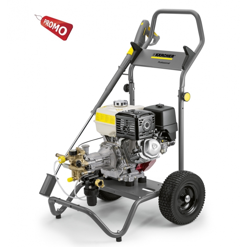 Echipat cu un motor Honda pe benzina, Aparatul de curatat cu inalta presiune HD 9/23 G cu apa rece functioneza complet independent de surse de curent. Conceput pentru cele mai bune rezultate de curatare - datorita presiunii de 23- bar- si protejat de un cadru foarte rezistent, aparatul impresioneaza in cele mai dure conditii.Designul ergonomic permite mobilitate maxima chiar si pe teren denivelat. Rotile rezistente la intepaturi si gama larga de posibilitati de depozitare a accesoriilor fac aparatul foarte usor de utilizat. Alte caracteristici sunt pistolul EASY!Force, care utilizeaza reculul jetului de inalta presiune pentru a reduce la zero forta de apasare a operatorului cat si sistemul EASY!Lock de conectori cu eliberare rapida ce permit montarea si demontarea de cinci ori mai rapida decat atunci cand se utilizeaza cei cu insurubare. Pompa puternica permite dragarea apei din lacuri sau iazuri la nevoie. Este protejata de un filtru mare de apa si o valva cu termostat ce previne supraincalzirea in modul de recirculare.De asemenea este disponibila pentru HD 9/23 G si o carcasa cu ochiuri de agatare cat si un kit pentru furtun cu tambur.