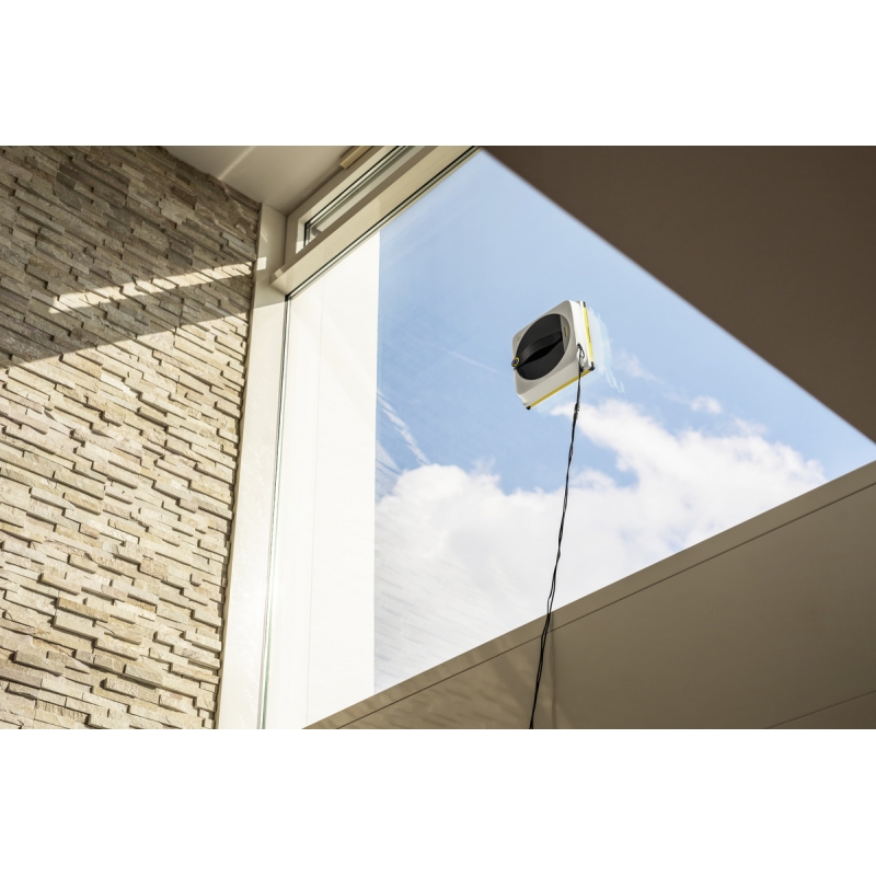 Robotul de curățat geamuri RCW 4 Extra+ curăță fără efort geamurile mari, greu accesibile și fără ramă, asigurând o curățare fără urme datorită umezirii continue a lavetelor.
