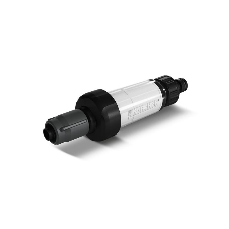 Filtrul de particule protejeaza setul Karcher Rain System® de particulele de murdarie. Filtrul este fixat la capatul furtunului de alimentare, la imbinarea cu Karcher Rain System®. Filtrul poate fi simplu de indepartat si curatat in orice moment. Exista un conector de robinet pe partea de intrare, care este compatibil cu toate sistemele de prindere cunoscute. Partea de iesire formeaza racordul pentru furtunul Karcher Rain System® sau furtunul de absorbtie. Furtunurile sunt pur si simplu atasate direct si fixate pe durata utilizarii cu o piulita de imbinare, fara a fi nevoie de alte instrumente. Karcher Rain System® combina avantajele sistemelor de micro-scurgere si sistemele de irigare conventionala. Sistemul functioneaza cu o presiune de pana la 4 bari, poate fi adaptat individual la aproape orice tip de gradina si functioneaza perfect impreuna cu SensoTimer pentru controlul irigarii, in functie de necesitati.