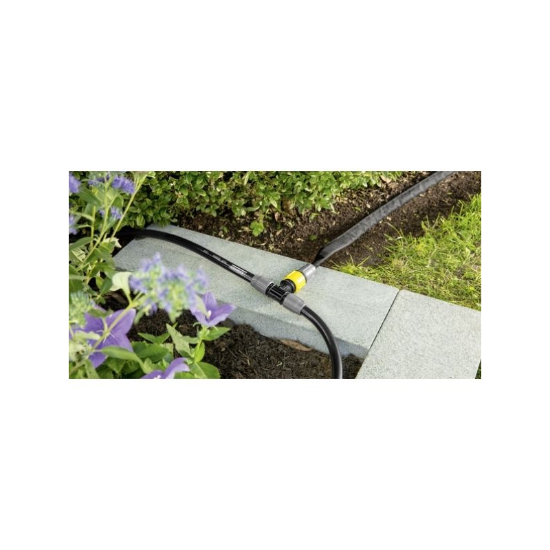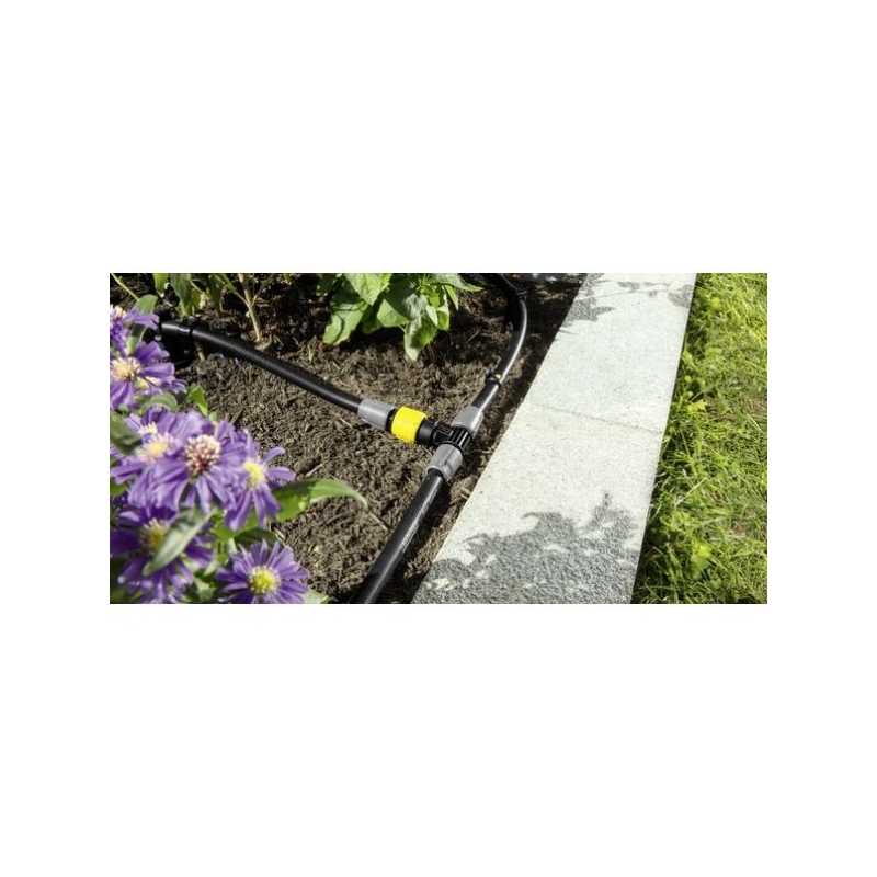 Piesa in T cu reglare, este o parte a Karcher Rain System®. Aceasta conecteaza trei furtunuri Karcher Rain System® sau furtunuri de absorbtie unele intre altele si permite asezarea a doua linii de furtunuri independente. Acest lucru inseamna ca sistemul poate fi perfect adaptat la cerinte individuale. T-ul lateral are un volum ajustabil si prin urmare, are o presiune reglabila si este perfect pentru conectarea furtunului de absorbtie. Furtunul este extrem de usor de instalat, fara a utiliza alte instrumentele. Furtunul este pur si simplu apasat in piesa T si fixat utilizand o saiba de imbinare. Karcher Rain System® extrem de eficient combina avantajele micro-picurarii si ale sistemelor de irigare conventionala, lucreaza cu o presiune de pana la 4 bari si se caracterizeaza printr-un furtun cu coliere de picurare si pulverizare. Karcher Rain System® poate fi adaptat in mod individual la aproape orice tip de gradina si lucreaza perfect cu SensoTimer pentru controlul irigarii bazat pe necesitati.