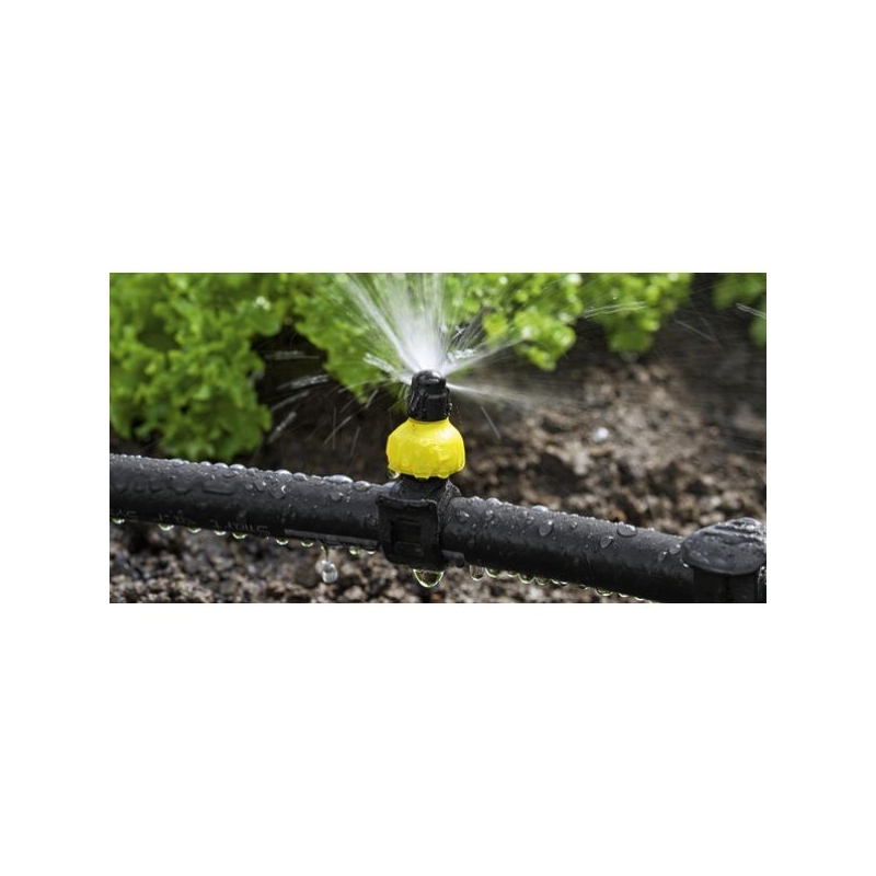 Colierele de pulverizare cu indicator integrat pot fi fixate oriunde pe furtunul Kärcher Rain System®. Micro-pulverizatorul ajustabil poate fi reglat conform cerintelor.