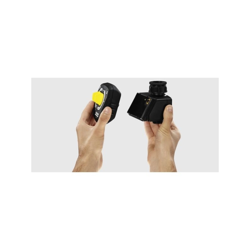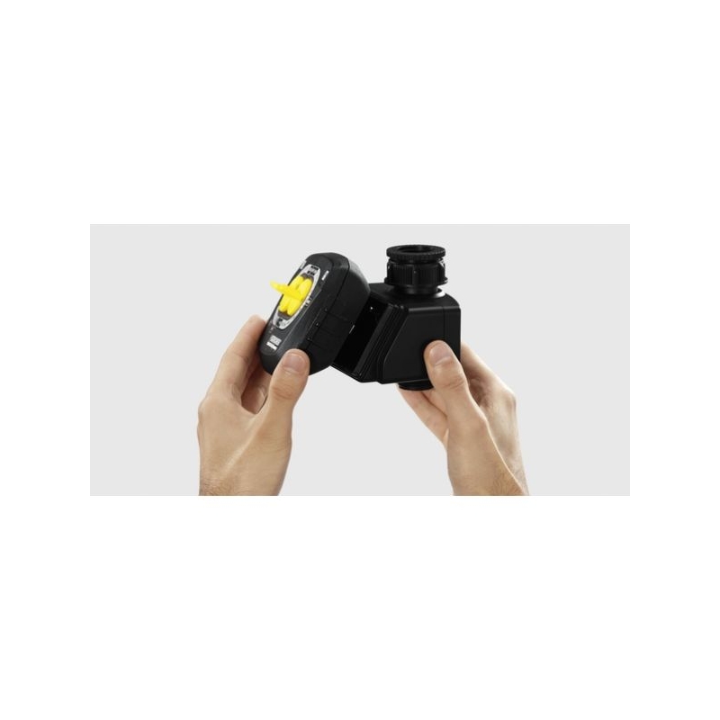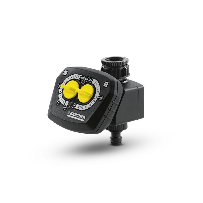 Irigare precisa, la cerere: Noua unitate de irigare WT 4 este foarte simplu de programat. Afisajul demontabil, butoanele mari de comanda si panoul clar aranjat, face programarea simpla si fara efort. Durata maxima de irigare ajunge pana la 120 de minute. Irigarea incepe si se termina conform programului si in mod automat la o ora presetata. Adaptorul pentru robinet si prefiltrul sunt incluse.Bateria de 9 volti nu este inclusa. Prin urmare, apa nu va curge daca nu este necesar. Acest lucru este bun pentru mediu, economisind in acelasi timp bani. Temporizatoarele de apa Karcher sunt compatibile cu toate sistemele de prindere cu click.